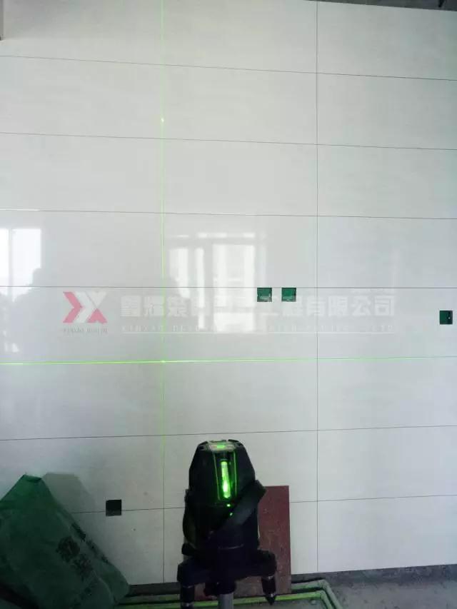 使用水平測量儀來給瓷磚通縫,檢測瓷磚的鋪貼是否工整。